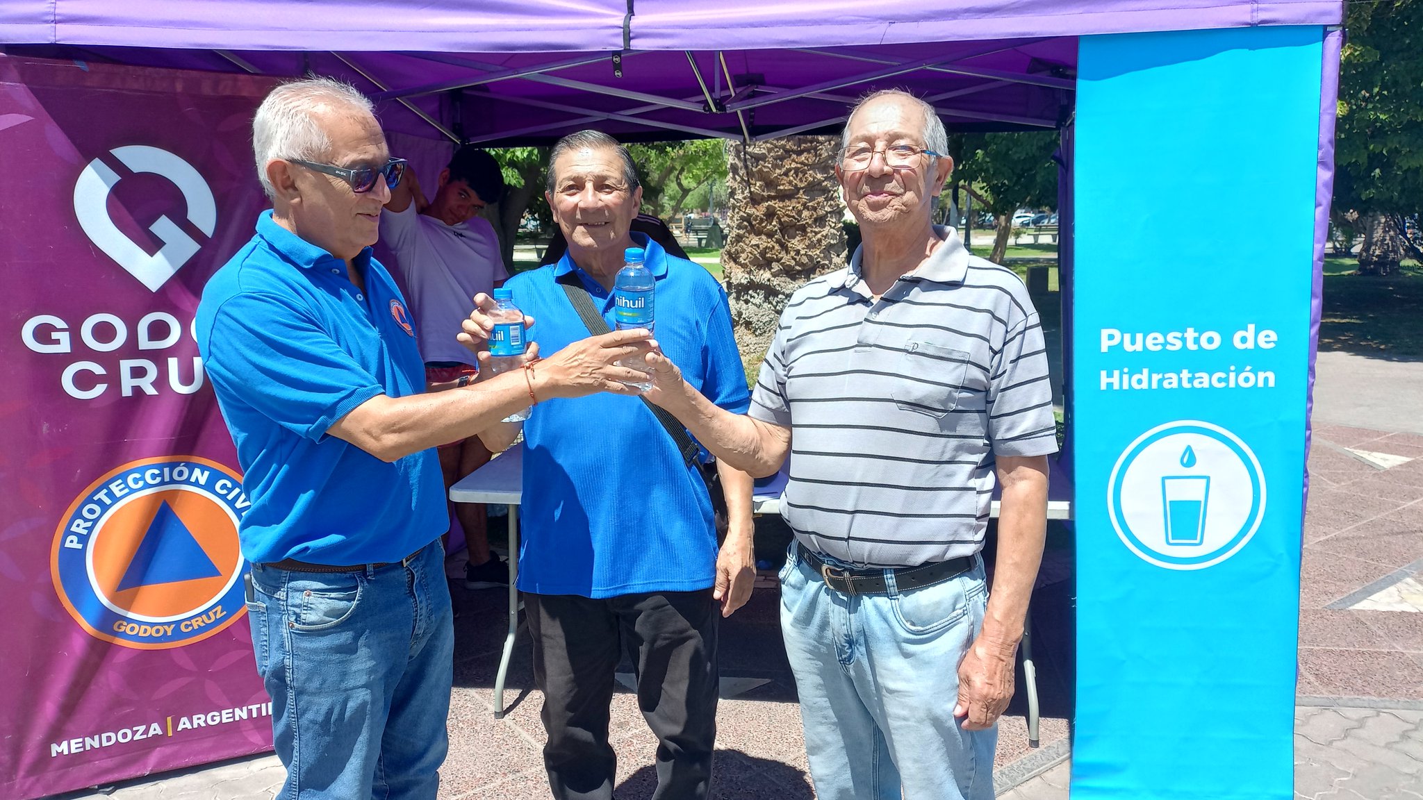 Protección Civil de Godoy Cruz en un puesto de hidatación
