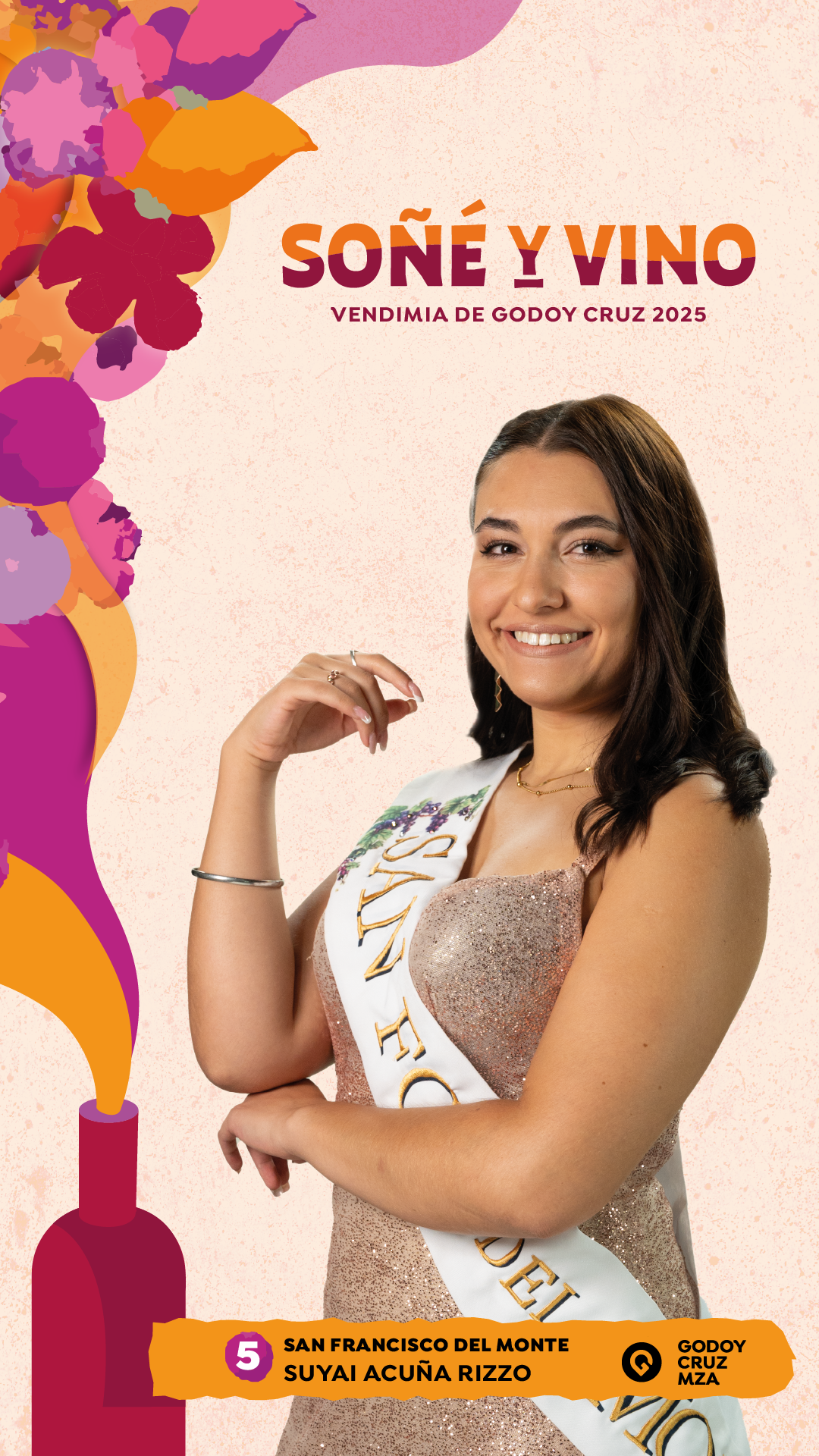 Entre las 9 candidatas al cetro vendimial saldrá la próxima soberana, el sábado 22, en el Parque San Vicente. Allí, se llevará a cabo el acto central de “Soñé y Vino”, y se anunciará la nueva representante elegida a través del voto de los ciudadanos